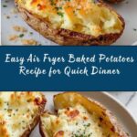 You can turn these simple baked potatoes into showstoppers by making loaded potato skins or twice-baked potatoes. Scoop out some of the fluffy insides, mix with your favorite cheeses and herbs, then stuff back and air fry briefly again for a crispy, cheesy topping. This Air Fryer Baked Potatoes Recipe is a fantastic base for endless culinary adventures!