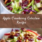 A fresh and vibrant Apple Cranberry Coleslaw combining crisp three-color coleslaw mix with sweet apples, tart dried cranberries, crunchy walnuts, and a tangy honey-ginger dressing. Perfect as a refreshing side dish for any meal or picnic.