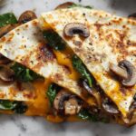 This Baked Spinach Mushroom Quesadillas recipe features a delicious combination of sautéed mushrooms, fresh spinach, and a blend of mozzarella and cheddar cheeses, all baked between crispy tortillas for a warm, cheesy, and nutritious meal that’s perfect for a quick lunch or dinner.