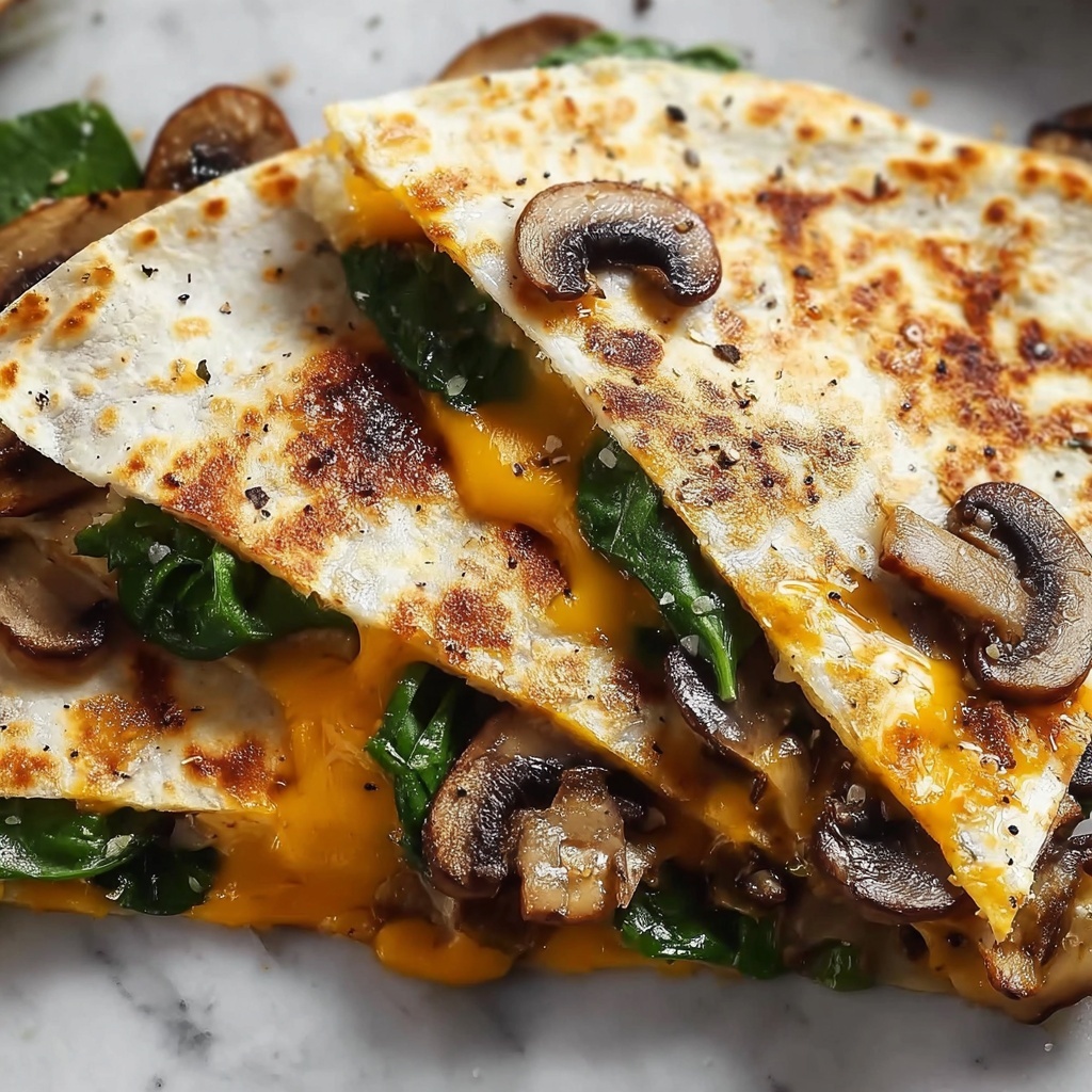 - Add Vegetables: Evenly layer the sautéed mushrooms and the roughly chopped spinach over the cheese on the tortillas.