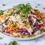 This Bang Bang Chicken Salad combines tender, flavorful chicken with a vibrant and spicy dressing, served over crisp cabbage and crunchy vegetables for a refreshing, satisfying dish. The salad features a mix of textures and flavors, including a sweet chili mayo sauce, rice noodles, and fresh herbs, making it perfect for a light lunch or dinner.