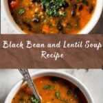 A hearty and nutritious Black Bean and Lentil Soup packed with vegetables, spices, and leafy kale. This comforting dish combines protein-rich lentils and black beans with a flavorful blend of aromatics and spices, simmered to perfection and finished with a fresh hint of lemon juice.
