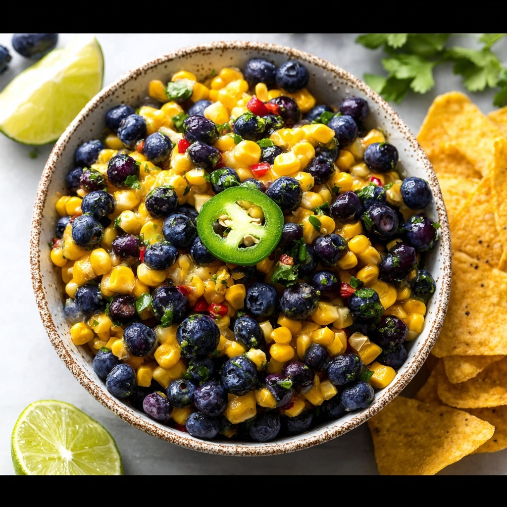 A fresh and vibrant Blueberry Corn Salsa combining sweet blueberries and crisp corn with a zesty lime dressing. Perfect as a light appetizer or a flavorful accompaniment to grilled meats and tortilla chips, this vegan salsa is both colorful and nutritious.