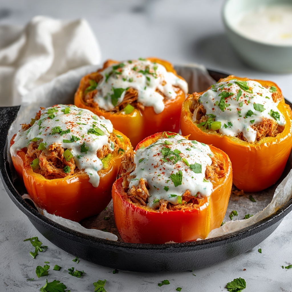 If you love bold flavors and a pop of color on your plate, the Buffalo Chicken Stuffed Peppers Recipe is an absolute game-changer. These vibrant bell peppers are filled with a creamy, spicy buffalo chicken mixture that’s oozing with cheesy goodness and a subtle tang from the buffalo sauce. It’s the perfect blend of comfort food with a hint of heat, all baked to perfection in under an hour. Whether you’re looking for an impressive weeknight dinner or a crowd-pleasing appetizer, this recipe delivers mouthwatering satisfaction every time.