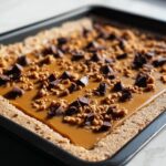 Grease a 9×13 inch baking dish lightly to prevent sticking, then press your sticky mixture firmly into the pan. Compacting the mixture well helps the bars hold their shape when cut and ensures every bar has that perfect ratio of caramel to crunch.