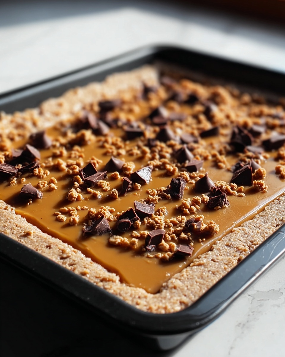 Refrigerate the assembled bars for at least one hour. This chilling time allows the caramel and chocolate topping to firm up, making them easy to cut into neat, satisfying squares—ready for you to indulge.