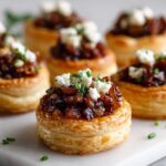 These Caramelized Onion Tarts feature a flaky puff pastry base topped with sweet, slow-cooked onions, tangy crumbled feta, and fresh chives. A perfect savory appetizer or elegant snack, these tarts balance rich, savory flavors with a hint of balsamic vinegar for depth. Ideal for entertaining or a lovely addition to any meal.