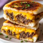 These Cheeseburger Stuffed Flatbreads are a quick and delicious twist on a classic cheeseburger, combining savory seasoned ground beef and melted cheddar cheese wrapped in warm, toasted flatbreads. Perfect for an easy weeknight dinner, these handheld flatbreads are filled with flavorful cheeseburger ingredients and can be customized with your favorite toppings.