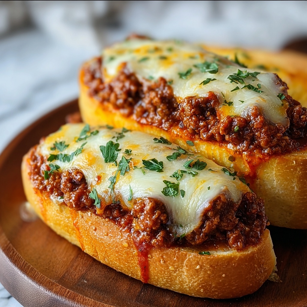 These Cheesy Garlic Bread Sloppy Joe Melts combine the classic sloppy joe flavors with a crispy, buttery garlic bread base topped with melty mozzarella and sharp cheddar cheese. Perfect for a quick and satisfying meal that blends comfort food with bold, savory taste.