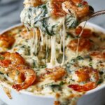 This Cheesy Rich and Creamy Shrimp and Crab Spinach Dip is a decadent appetizer combining creamy cheeses, succulent seafood, and fresh spinach, baked to golden perfection. It’s perfect for gatherings, offering a luscious blend of flavors and textures that pairs wonderfully with crusty bread, crackers, or fresh vegetable sticks.