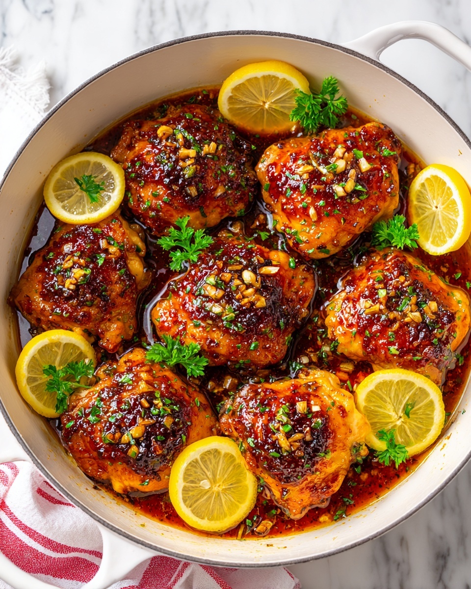 - Simmer the Chicken: Pour the marinade into the skillet with the browned chicken and bring it to a boil. After boiling, reduce the heat to low and let it simmer uncovered for 30 to 35 minutes, or until the chicken is tender and fully cooked through, and the sauce is slightly thickened.