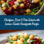 A vibrant and nutritious Chickpea, Beet & Feta Salad featuring roasted beets, protein-rich chickpeas, and tangy feta cheese, all tossed in a zesty lemon-garlic vinaigrette. Perfect as a light lunch or a colorful side dish, this salad combines earthy flavors and fresh greens for a wholesome meal.