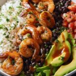 While the shrimp itself can be frozen if uncooked, it’s best not to freeze the fully assembled bowls or lime crema, as the texture of avocado, crema, and fresh toppings may be compromised. Instead, freeze cooked shrimp separately in a freezer-safe container for up to 2 months and thaw in the refrigerator before reheating.