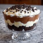 This decadent Chocolate Brownie Mousse Trifle is a luscious layered dessert featuring rich brownie cubes, creamy chocolate mousse, and fluffy whipped cream. Perfect for parties and gatherings, it combines the intense flavors of chocolate with a light, airy texture, elegantly presented in a trifle dish or individual glasses.