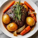 This Classic Pot Roast recipe delivers a tender, flavorful beef roast braised slowly with aromatic herbs, hearty vegetables, and a rich red wine and tomato-based gravy. Perfect for a comforting family meal, the pot roast is seared to lock in juices and then simmered on the stovetop until melt-in-your-mouth tender.