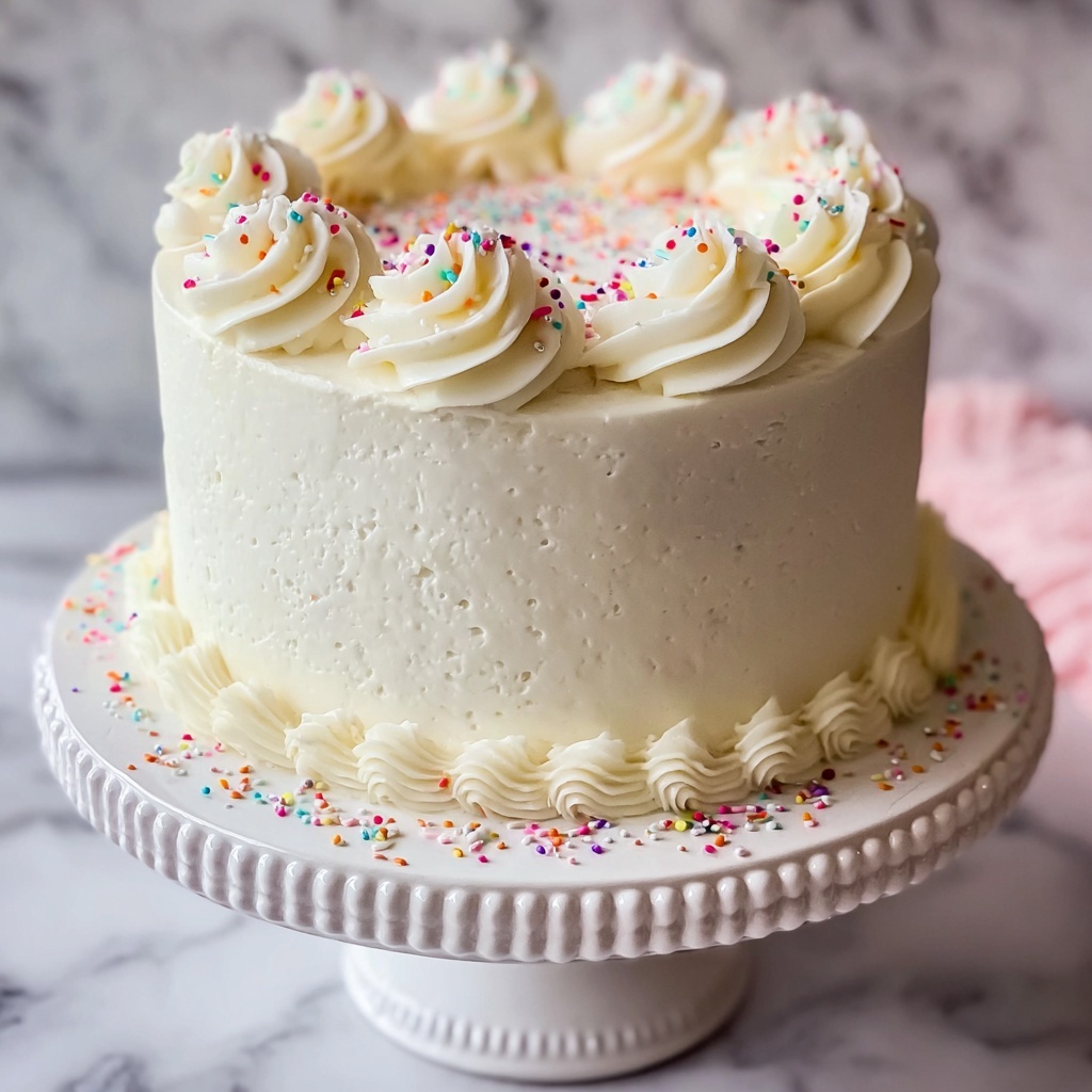This classic white cake recipe yields a tender, moist, and fluffy cake perfect for any occasion. With a smooth vanilla flavor and light crumb, it serves as an ideal base for frosting and decorating.