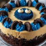 This Delicious Cookie Monster Cheesecake combines a rich blondie base with a vibrant blue Oreo-studded cheesecake layer and a smooth chocolate ganache topping. Perfect for cookie lovers looking for a fun, decadent dessert that impresses both visually and in taste.