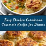 This Cornbread Casserole is a comforting and hearty dish combining tender chicken, savory vegetables, and a creamy sauce topped with a fluffy cornbread crust. Perfect for a family dinner, it’s easy to prepare and bakes to golden perfection, delivering a delicious balance of textures and flavors.