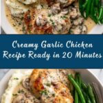 A rich and flavorful Creamy Garlic Chicken recipe featuring tender chicken breasts cooked in a luscious garlic cream sauce. Ready in just 20 minutes, this dish combines simple ingredients to create a comforting and elegant meal perfect for any weeknight dinner.