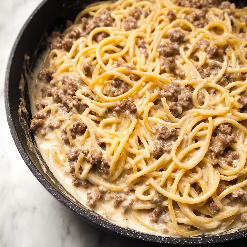 Finally, add the cooked spaghetti directly into your skillet with the creamy beef sauce. Gently toss everything together so the noodles are generously coated with the cheesy, flavorful sauce. This step brings all the elements together, ensuring every forkful is pure deliciousness.