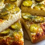 Garnish with fresh dill for a bright color and fresh herby aroma that complements the rich toppings perfectly. Now, your Dill Pickle Focaccia Bread Recipe is ready to wow at the table.
