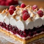 These Double Raspberry Meringue Bars feature a buttery shortbread crust topped with a vibrant raspberry curd and finished with a fluffy, tangy raspberry-infused meringue. Perfectly sweet and tart, with a delicate crunch and a soft, marshmallow-like topping, these bars make an impressive dessert or treat for raspberry lovers.