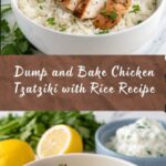 A simple and flavorful one-dish meal combining tender baked chicken breasts with fragrant rice cooked in chicken broth, topped with cool and creamy tzatziki sauce. This Dump and Bake Chicken Tzatziki with Rice recipe is easy to prepare, making it perfect for a hassle-free weeknight dinner that delivers Greek-inspired Mediterranean flavors.