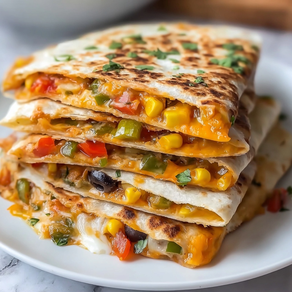 Bring extra life to your quesadillas with fresh garnishes like chopped cilantro, a dollop of creamy sour cream or Greek yogurt, and a squeeze of lime. Fresh pico de gallo or a mild salsa can add a zesty kick that complements the vegetables perfectly.