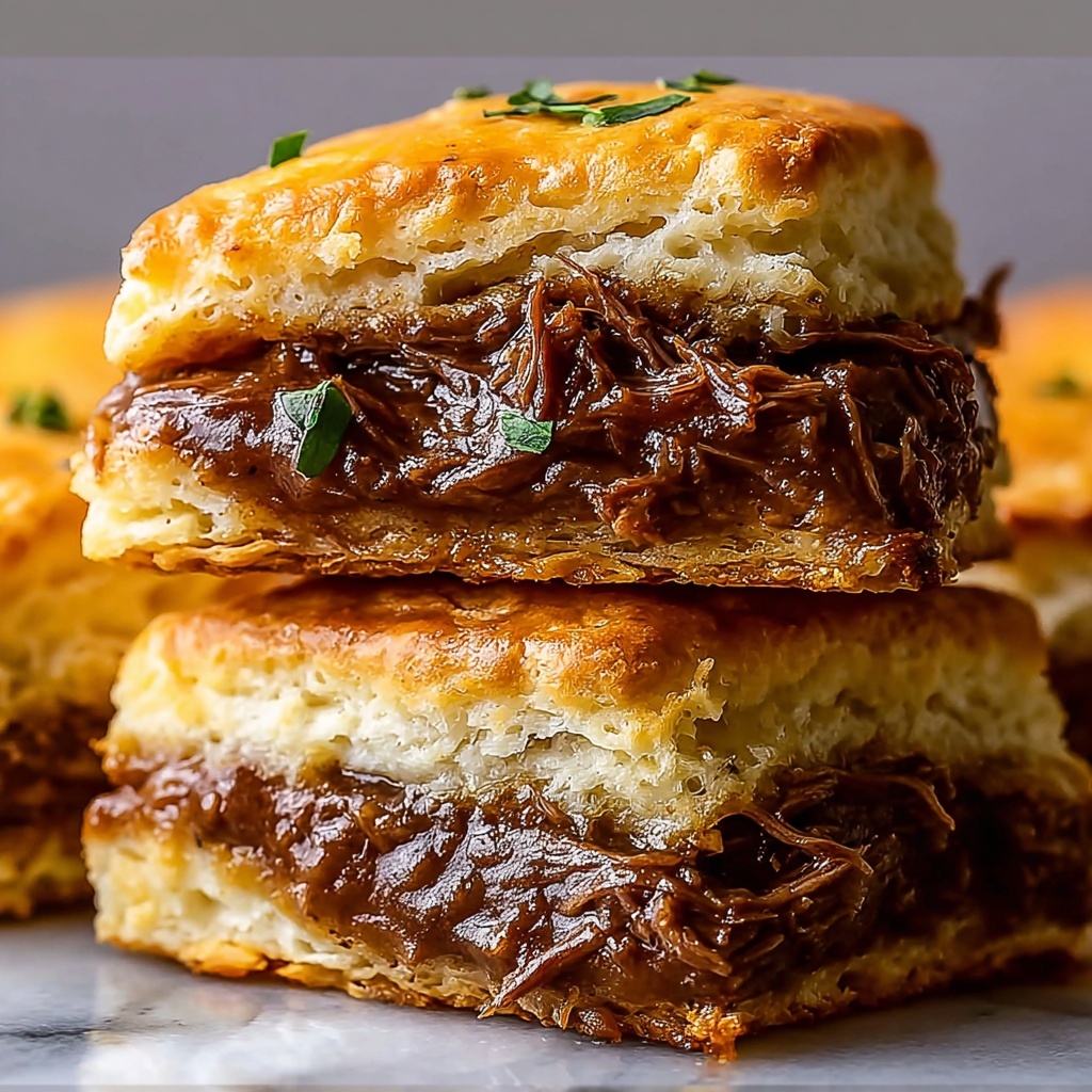 Consider serving with a crisp mixed green salad or some roasted vegetables for a fresh balance. Crispy fries or classic potato chips also pair wonderfully, adding a satisfying texture alongside the soft biscuits and rich au jus.
