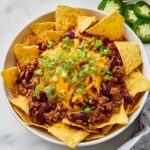 Ladle the hot chili directly onto the bed of Fritos. Sprinkle the shredded cheddar cheese over the chili while it’s still warm so it melts to perfection. This melting cheese creates a luscious, gooey layer that ties the dish together. Customize your pie with your favorite toppings like diced onions, jalapeno peppers, dollops of sour cream, sliced green onions, diced tomatoes, or chopped bell peppers for an added pop of color and texture. Serve right away and dive into pure deliciousness!
