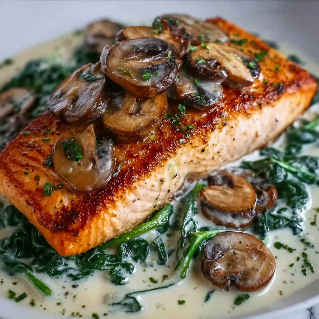 This Garlic Butter Salmon with Spinach & Mushrooms in Creamy Sauce Recipe is truly a winner for anyone who loves rich, comforting food without complicated steps. It’s a one-pan wonder you’ll want to make over and over, a dish that feels like a special occasion yet fits perfectly into busy weeknights. Dive in and enjoy every buttery, garlicky, creamy bite!