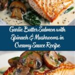 This Garlic Butter Salmon with Spinach & Mushrooms in Creamy Sauce is a rich and flavorful dish that brings together perfectly seared salmon fillets with a luscious creamy sauce, sautéed garlic, mushrooms, and fresh spinach. Ready in just 25 minutes, this elegant yet simple recipe is perfect for a weeknight dinner or a special occasion.