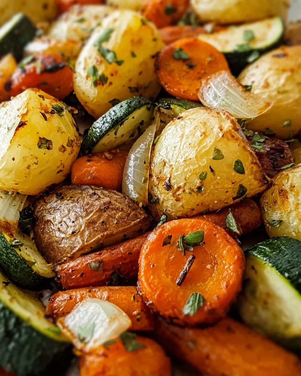 This Garlic Herb Roasted Potatoes, Carrots, and Zucchini recipe features tender baby potatoes, sweet carrots, and fresh zucchini tossed in fragrant herbs and garlic, then roasted to a perfect golden brown. It’s a simple, wholesome side dish that’s full of flavor and perfect for any meal.