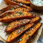 Serve the wedges stacked in a rustic basket lined with parchment paper for a casual vibe, or arrange neatly on a platter with dipping sauces like garlic aioli, spicy ketchup, or ranch dressing for a party-ready appetizer. Mixing up the dipping sauces keeps this Garlic Parmesan Sweet Potato Wedges Recipe fresh and exciting every time you make it.