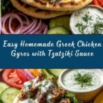 This Greek Chicken Gyros recipe features tender, marinated chicken breasts grilled to perfection and served in warm pita breads with fresh vegetables and a creamy homemade tzatziki sauce. The lemon-herb marinade imparts bright, zesty flavors complemented by the cool cucumber-dill yogurt sauce, creating an authentic and delicious Greek street food experience that can be enjoyed at home.