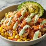 - Assemble Bowl: Place the grilled shrimp in serving bowls, top with the avocado corn salsa, and drizzle generously with the creamy sauce. Serve immediately for best flavor and texture.