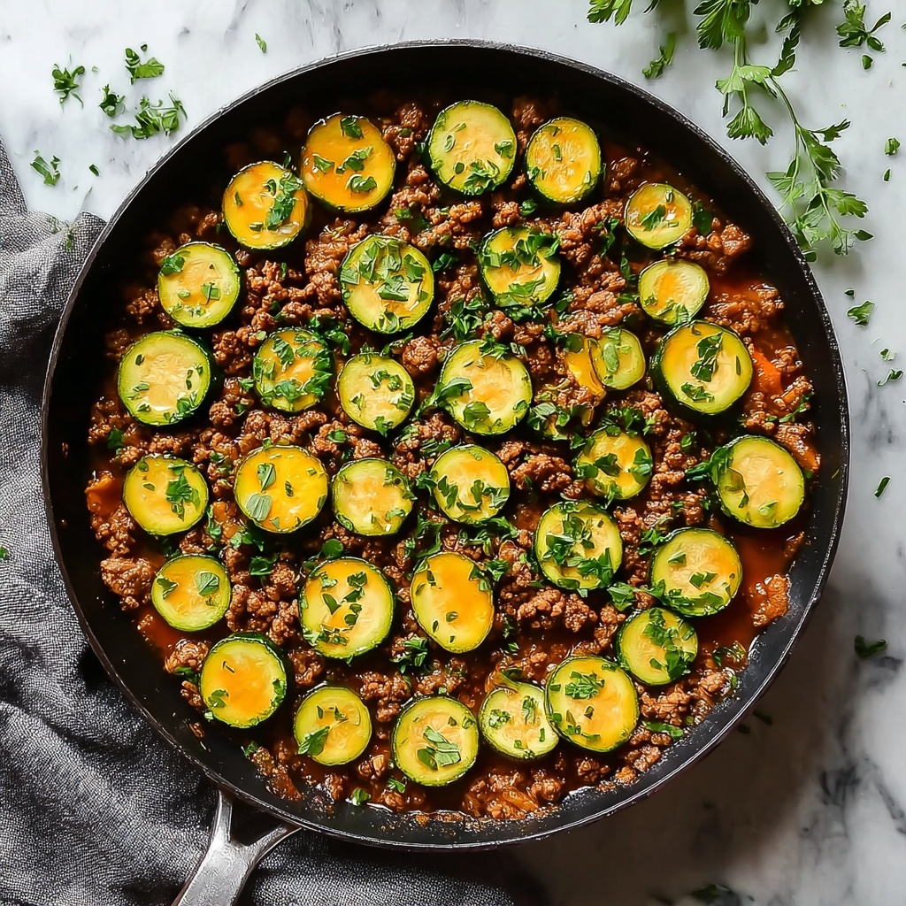 A quick and healthy one-pan meal featuring ground turkey and fresh zucchini, cooked in a flavorful blend of garlic, onion, and herbs. This Ground Turkey and Zucchini Skillet is perfect for a nutritious weeknight dinner, combining lean protein and vegetables with savory Parmesan cheese.
