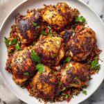 This Harissa Chicken recipe is a flavorful North African-inspired dish featuring tender, juicy chicken thighs marinated in a spicy harissa paste blended with aromatic spices. Perfect for a quick weeknight dinner, the chicken is cooked on the stovetop providing a deliciously charred and smoky taste with vibrant heat and citrusy brightness from lemon juice. Serve with rice, couscous, or a fresh salad for a complete meal.