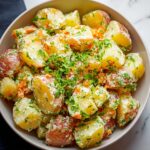 To make this potato salad vegetarian, simply omit the bacon or replace it with smoked tempeh or mushrooms for a similar smoky crunch. Use plant-based mayo and sour cream alternatives to keep it vegan-friendly.