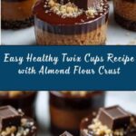 Delicious and healthy homemade Twix cups featuring a crunchy almond flour crust, creamy date caramel, and rich dark chocolate topping. These guilt-free treats are perfect for a sweet snack or dessert, combining natural ingredients without refined sugars.