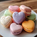 Delight in these charming heart-shaped macarons, a classic French dessert featuring delicate almond meringue shells filled with a smooth, vanilla buttercream. Perfect for Valentine’s Day or any special occasion, these macarons offer a beautiful balance of sweetness and texture with their crisp exteriors and soft, luscious filling.