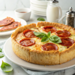 This Hearty Pizza Pie features a homemade deep-dish crust filled with a savory blend of ground beef or Italian sausage, pizza sauce, cheeses, and fresh vegetables, topped with pepperoni and extra cheese for a satisfying, crowd-pleasing meal perfect for family dinners or gatherings.