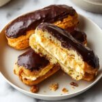 This Homemade Eclairs recipe features light and airy choux pastry filled with rich vanilla pastry cream and topped with a smooth, glossy chocolate ganache. Perfectly baked and elegantly glazed, these classic French desserts are sure to impress at any gathering.