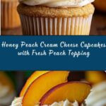 Delight in these Honey Peach Cream Cheese Cupcakes, a perfect balance of sweet honey, fresh peaches, and creamy vanilla-infused cream cheese filling. Soft, moist cupcakes are baked to golden perfection and crowned with luscious peach slices and a honey drizzle, making them an irresistible treat for any occasion.
