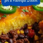 Now for the fun part: assembling the casserole! Spread the seasoned beef mixture evenly at the bottom of your greased baking dish. Next, pour the enriched cornbread batter on top, smoothing it out gently. Sprinkle the shredded cheddar cheese liberally over the batter to guarantee a beautifully golden, cheesy crust after baking. Bake the entire casserole for 30 to 35 minutes until the cornbread topping is golden brown and a toothpick inserted in the center comes out clean.