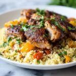 Start by whisking together olive oil, ground cumin, coriander, cinnamon, turmeric, minced garlic, fresh lemon juice, salt, and pepper in a bowl. Toss your chicken thighs in this vibrant marinade until well coated. Cover the bowl and refrigerate it for at least 30 minutes, but letting it rest for a couple of hours will allow those incredible flavors to meld deeply into the meat, making every bite irresistible.