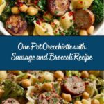 This One Pot Orecchiette with Sausage and Broccoli recipe is a flavorful and hearty meal that combines tender orecchiette pasta with sweet Italian sausage, chickpeas, and vibrant broccoli florets. Cooked all in one skillet with aromatic garlic and onions, and finished with fresh arugula and parmesan cheese, it’s a quick and satisfying dish perfect for weeknight dinners.