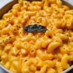 Dish out generous portions of this comforting mac and cheese into bowls. Top each serving with the crispy sage leaves you set aside earlier, along with a touch of freshly grated nutmeg and a crack of black pepper. This finishing touch elevates the dish with contrast in texture and an irresistible aroma that makes it truly special.