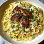 This creamy Parmesan Chicken Pasta is a comforting and flavorful dish featuring tender, pan-seared chicken breasts coated in a rich Parmesan cream sauce, tossed with perfectly cooked linguine or spaghetti. It’s an easy stovetop meal perfect for a cozy weeknight dinner.