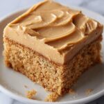 Once the cake has cooled, evenly spread the creamy peanut butter frosting over the top. The frosting adds that perfect finishing touch — luscious, creamy, and packed with peanut butter flavor. Slice and serve this heavenly dessert with a smile.